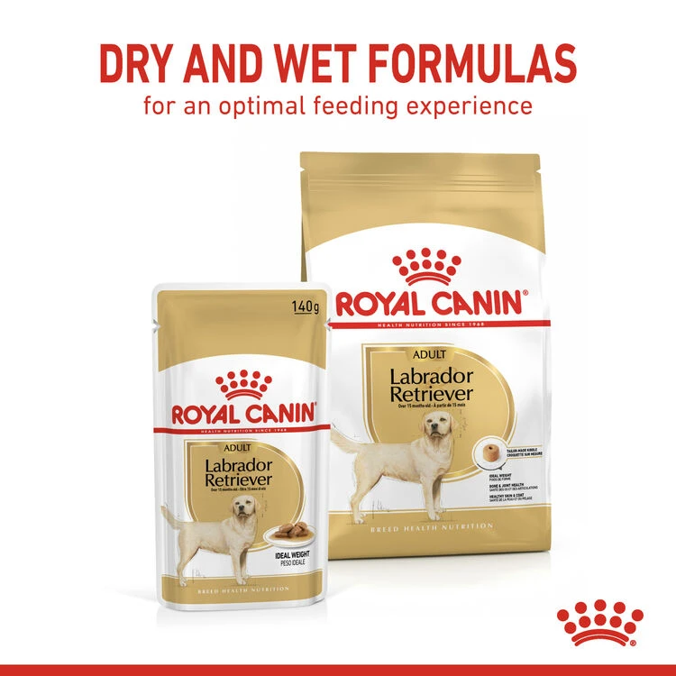 To cater to your dog’s preference, ROYAL CANIN® Labrador Retriever Adult is also available as dry kibble. If your dog enjoys a mixed diet, be sure to follow the on-pack feeding guides to ensure a healthy daily food intake.