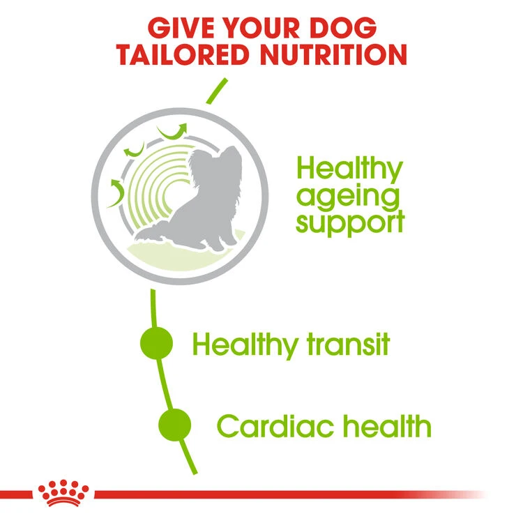 ROYAL CANIN® X-Small Ageing 12+ Senior Dry Dog Food is a complete and balanced recipe that has been designed for extra small breeds in their later years, offering all of the nutrition they require to stay active and healthy. The special formula will support healthy ageing, with a complex of antioxidants that will help to neutralise the effects of free radicals. Omega 3 fatty acids will help to maintain strong bones and joints, with a balance of fibres that will be easily digestible.